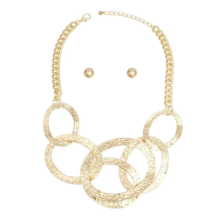Bib Modernist Chunky Gold Oval Rings Necklace
